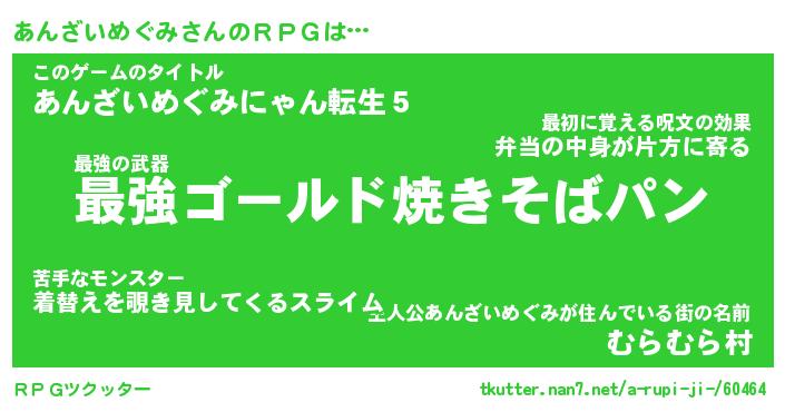 | 男性向けラノベタイトル風あだ名 | 『アンザイメグミアートオンライン』 |
