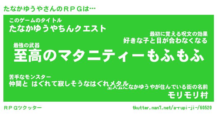 | ヒーロー風カッコイイあだ名 | 『スーパータナカユウヤ』『天弓騎士タナ』 |