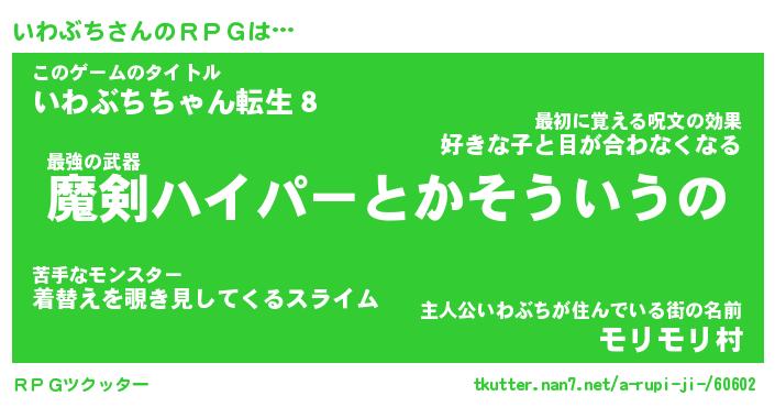 | ファンタジー風あだ名 | 『イワフェル』『エターナルイワブチー』 |
