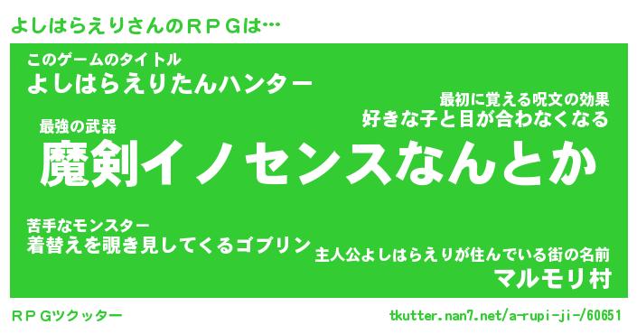 | 男性向けラノベタイトル風あだ名 | 『よしはらえりの憂鬱』 |