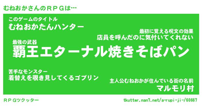| 男性向けラノベタイトル風あだ名 | 『ムネオカアートオンライン』 |