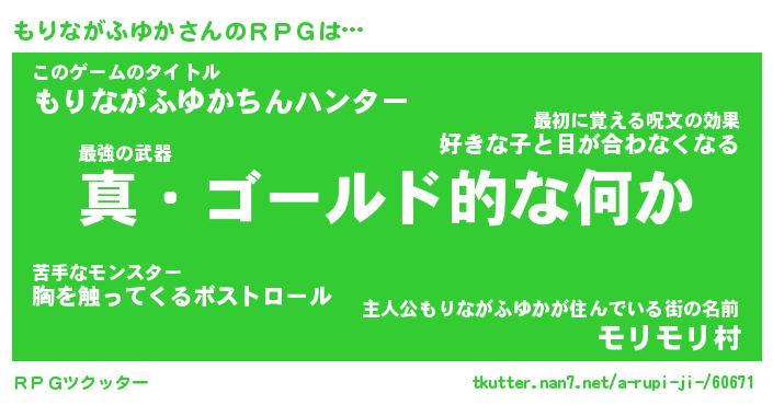 | 伝説のあだ名 | 『封印されしスナイパーもりながふゆか』 |