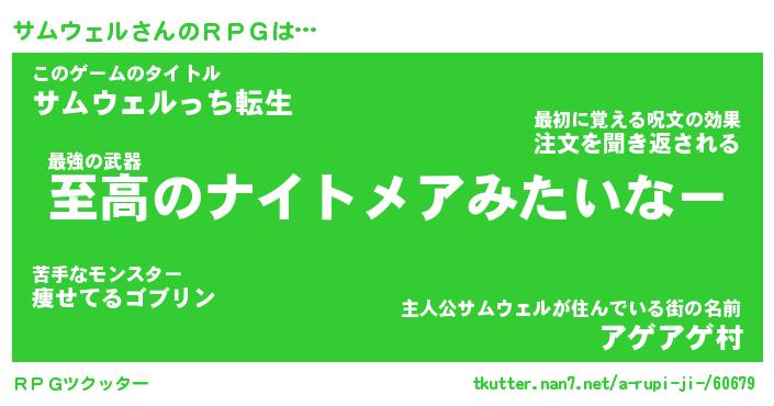 | 男性向けラノベタイトル風あだ名 | 『サムウェルアートオンライン』 |