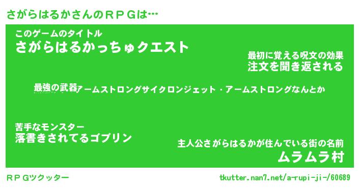 | 胡散臭い通販商品みたいなあだ名 | 『億万長者になれるブレスレット…その名も「さがらはるか」』 |