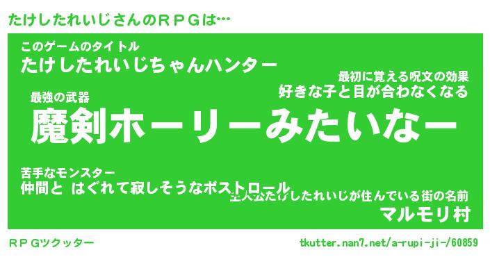 | 男性向けラノベタイトル風あだ名 | 『たけしたれいじの憂鬱』 |