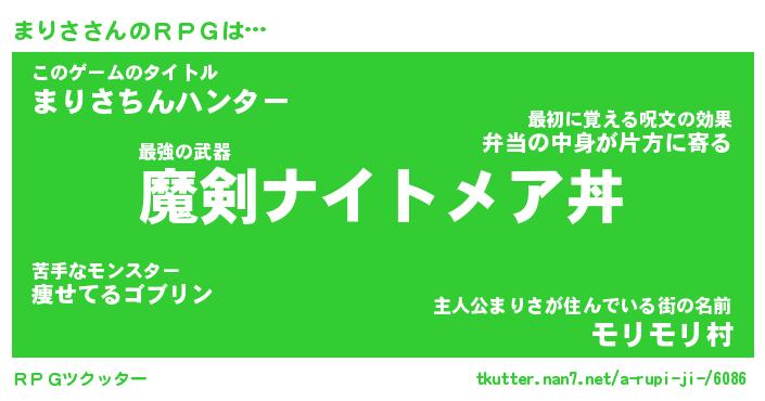 | 男性向けラノベタイトル風あだ名 | 『まりさの憂鬱』 |
