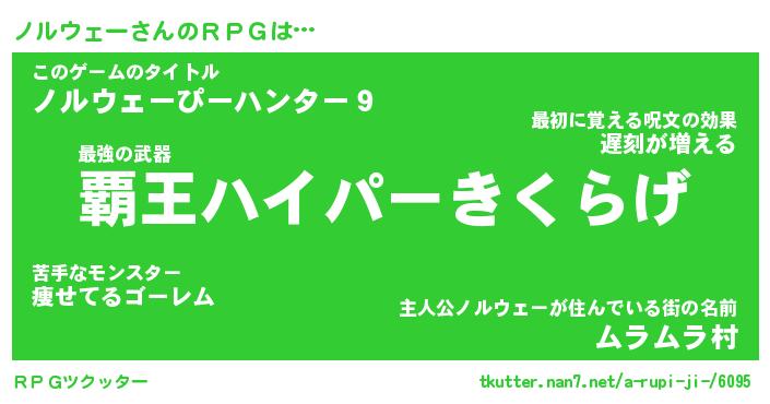 | 男性向けラノベタイトル風あだ名 | 『ノルウェーアートオンライン』 |
