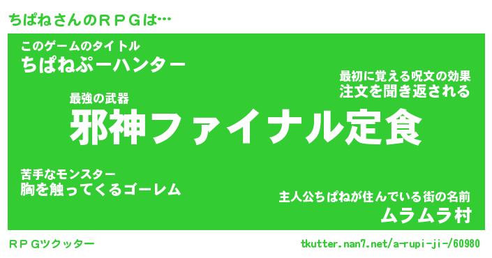 | 胡散臭い通販商品みたいなあだ名 | 『億万長者になれる水晶球…その名も「ちぱね」』 |