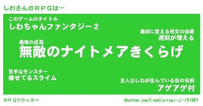 | 男性向けラノベタイトル風あだ名 | 『シワアートオンライン』 |