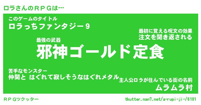 | ヘコむあだ名 | 『ロラもー』『なまこ酢』『ロラ太郎』 |