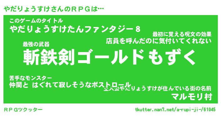 | 男性向けラノベタイトル風あだ名 | 『やだりょうすけの憂鬱』 |