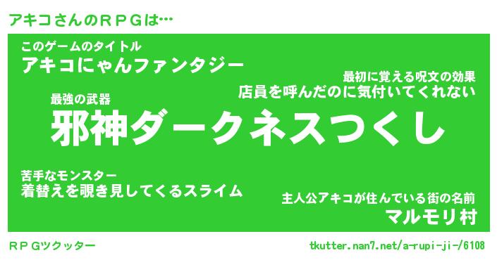 | 男性向けラノベタイトル風あだ名 | 『アキコアートオンライン』 |