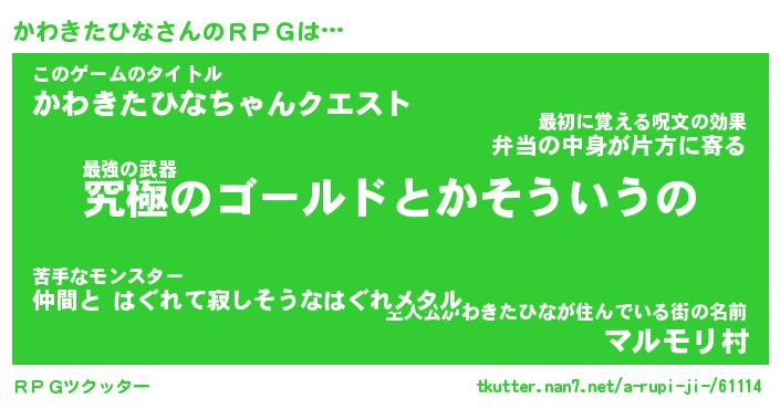 | 男性向けラノベタイトル風あだ名 | 『かわきたひなの憂鬱』 |