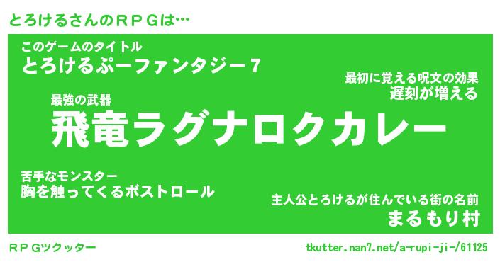 | 伝説のあだ名 | 『封印されし竜騎士とろける』 |