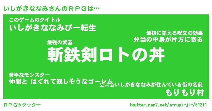 | 胡散臭い通販商品みたいなあだ名 | 『必ず成功するブレスレット…その名も「いしがきななみ」』 |