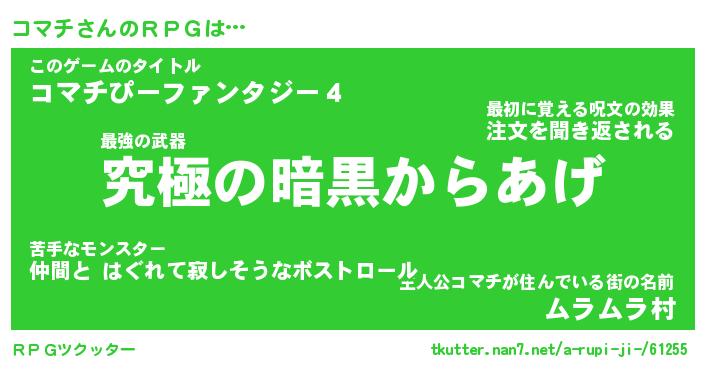 | ファンタジー風あだ名 | 『コマフェル』『エターナルコマチー』 |