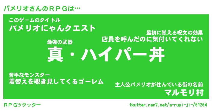 | 男性向けラノベタイトル風あだ名 | 『パメリオアートオンライン』 |