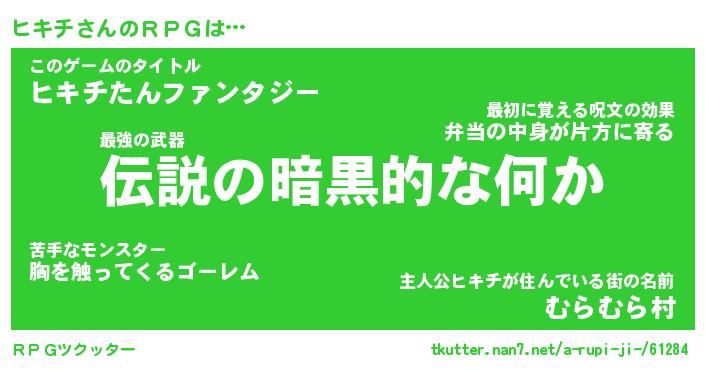 | 男性向けラノベタイトル風あだ名 | 『ヒキチの憂鬱』 |