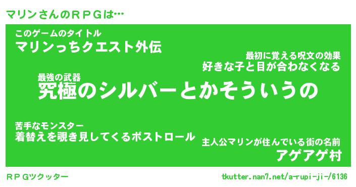 | ファンタジー風あだ名 | 『マリフェル』『エターナルマリンー』 |