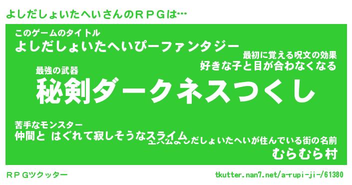 | 胡散臭い通販商品みたいなあだ名 | 『必ず成功する水晶球…その名も「よしだしょいたへい」』 |