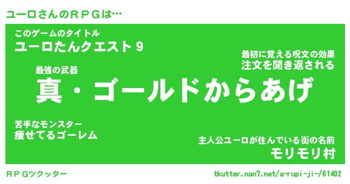 | ファンタジー風あだ名 | 『ユーフェル』『エターナルユーロー』 |