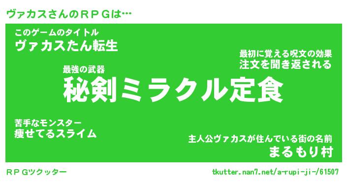 | 男性向けラノベタイトル風あだ名 | 『ヴァカスの憂鬱』 |