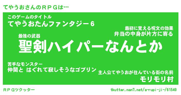 | 男性向けラノベタイトル風あだ名 | 『てやうおの憂鬱』 |
