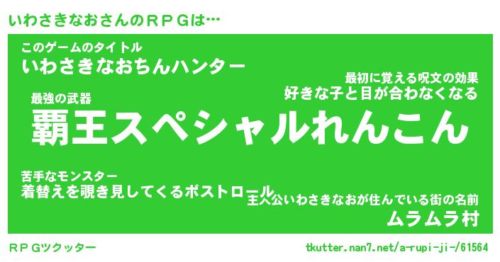 | 男性向けラノベタイトル風あだ名 | 『イワサキナオアートオンライン』 |