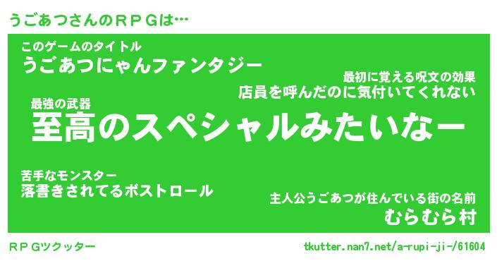 | 意味不明あだ名 | 『ペロリンうごあつ』『永久保存うごあつ』 |