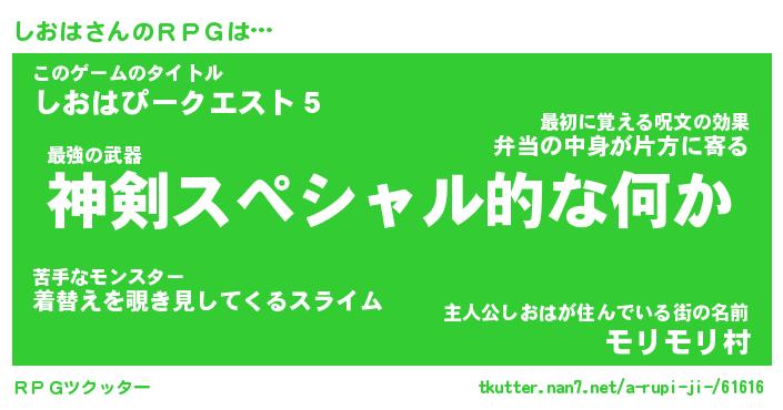 | 2回繰り返すあだ名 | 『しおしお』『ししおお』『ぬれぬれ』 |