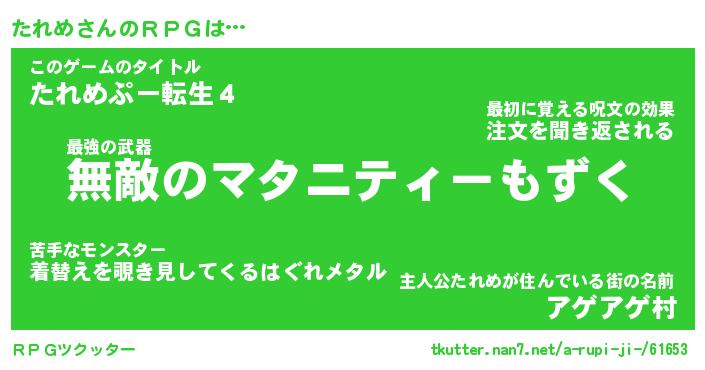 | ファンタジー風あだ名 | 『タレフェル』『エターナルタレメー』 |