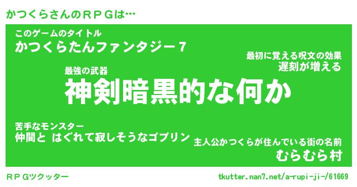 | 男性向けラノベタイトル風あだ名 | 『かつくらの憂鬱』 |