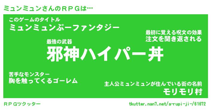 | 男性向けラノベタイトル風あだ名 | 『ミュンミュンアートオンライン』 |