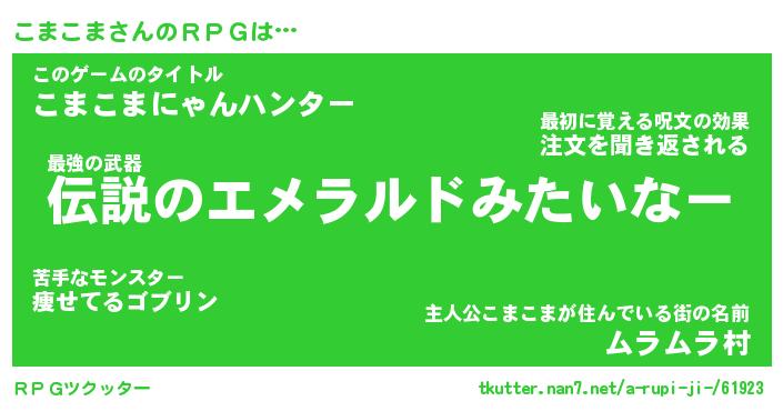| ファンタジー風あだ名 | 『コマフェル』『エターナルコマコマー』 |