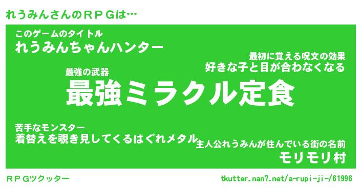 | 伝説のあだ名 | 『不死鳥の竜騎士れうみん』 |