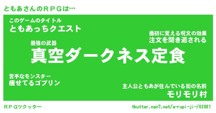 | 男性向けラノベタイトル風あだ名 | 『トモアアートオンライン』 |