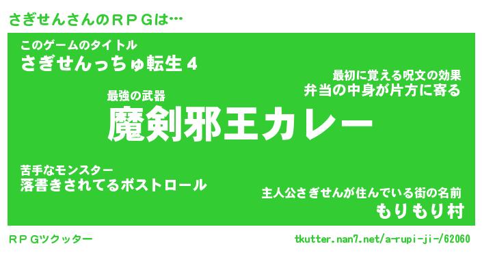 | 男性向けラノベタイトル風あだ名 | 『さぎせんの憂鬱』 |