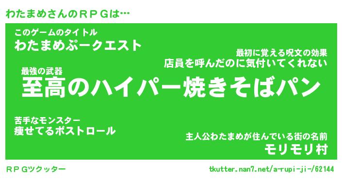 | 男性向けラノベタイトル風あだ名 | 『ワタマメアートオンライン』 |