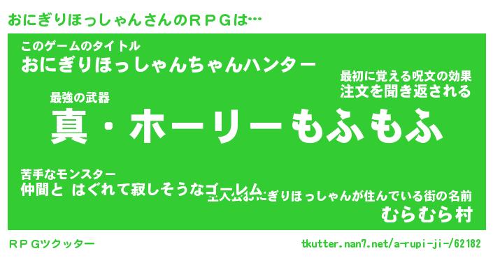 | 伝説のあだ名 | 『封印されし傭兵おにぎりほっしゃん』 |