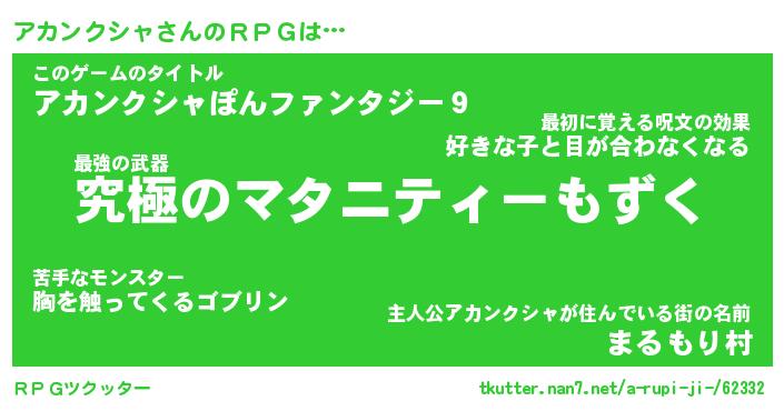 | 男性向けラノベタイトル風あだ名 | 『アカンクシャアートオンライン』 |