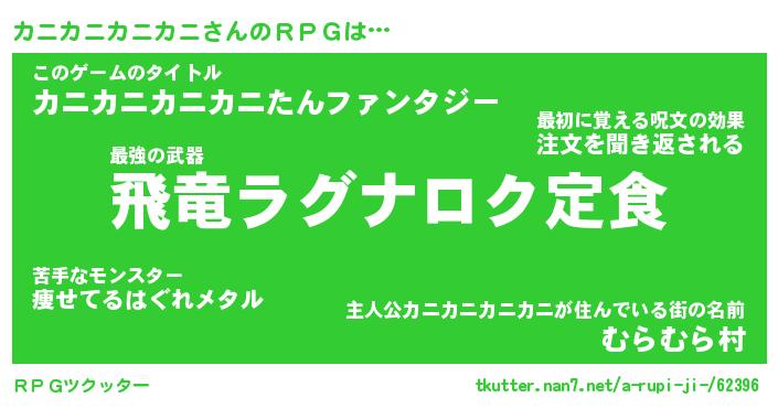 | 男性向けラノベタイトル風あだ名 | 『カニカニカニカニアートオンライン』 |
