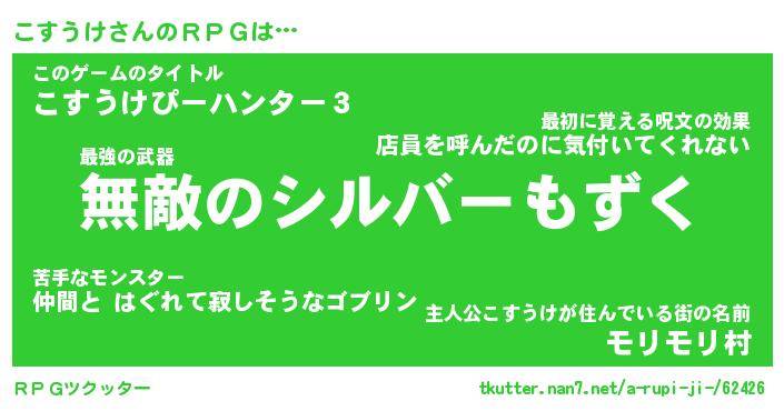 | 伝説のあだ名 | 『封印されし傭兵こすうけ』 |