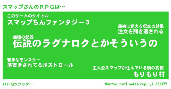 | 男性向けラノベタイトル風あだ名 | 『スマップの憂鬱』 |