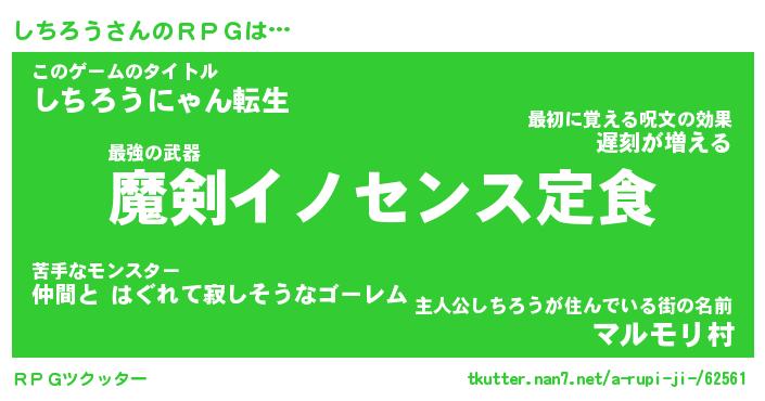 | 男性向けラノベタイトル風あだ名 | 『しちろうの憂鬱』 |