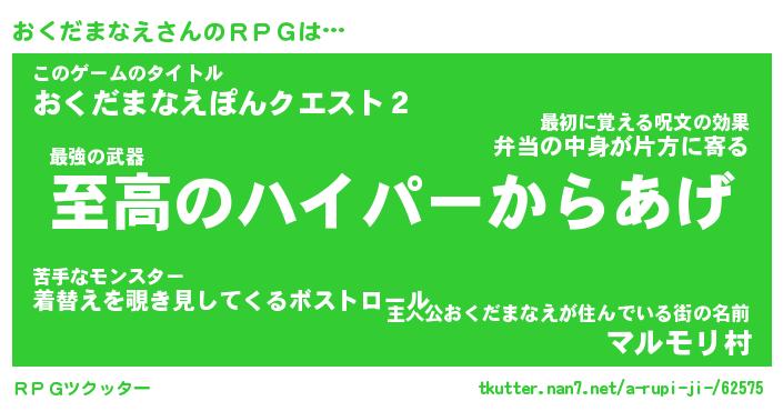 | 伝説のあだ名 | 『不死鳥の竜騎士おくだまなえ』 |
