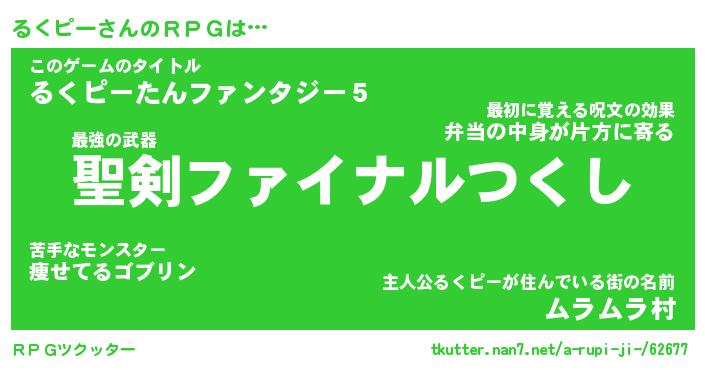 | 男性向けラノベタイトル風あだ名 | 『るくピーの憂鬱』 |