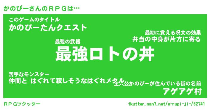 | 料理風あだ名 | 『節約★かのぴーと油揚げの玉子丼』 |
