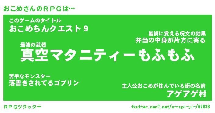 | 男性向けラノベタイトル風あだ名 | 『オコメアートオンライン』 |