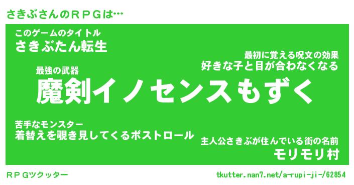 | 男性向けラノベタイトル風あだ名 | 『さきぶの憂鬱』 |