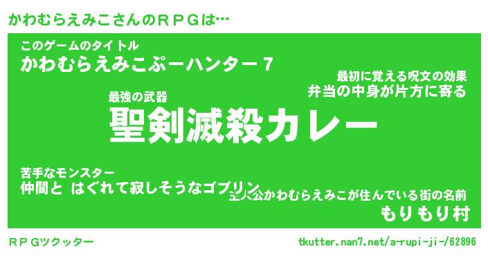 | 女子向けラノベタイトル風あだ名 | 『(仮)かわむらえみこのやんごとなき事情』 |
